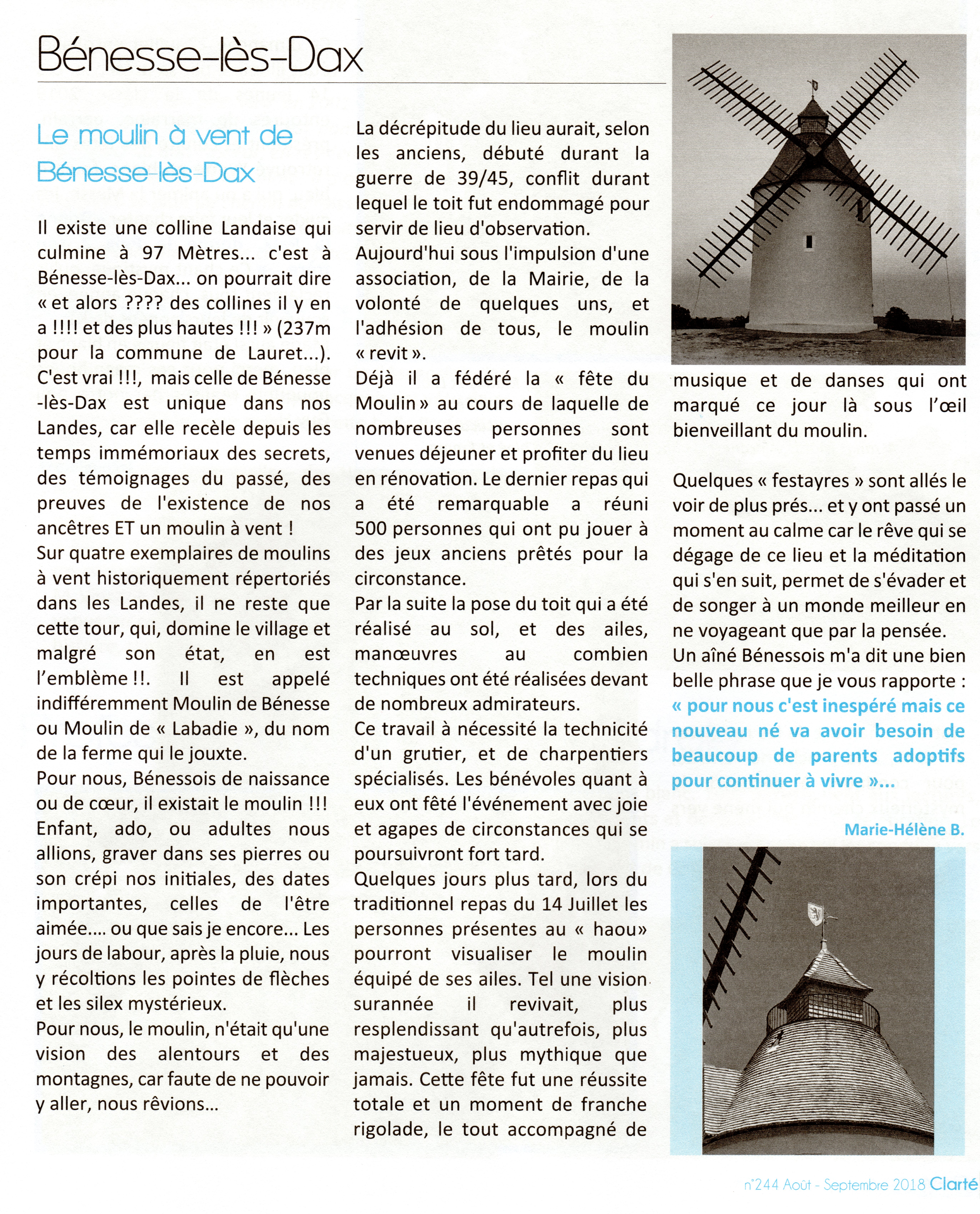 Clarté 2018 (Moulin) Publié 29 septembre 2018 à 5487 × 6800 dans Le moulin de Bénesse-Les-Dax ← Précédent Suivant →